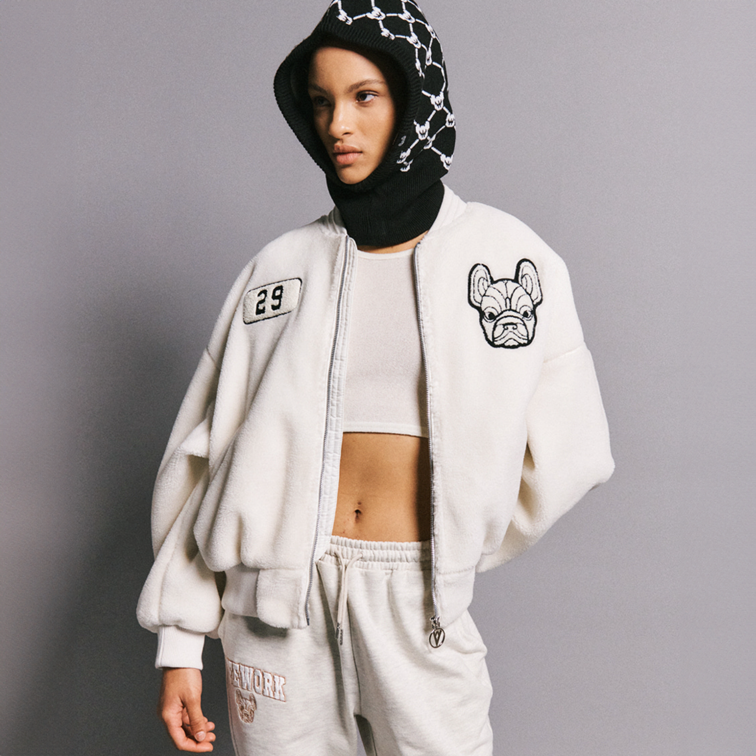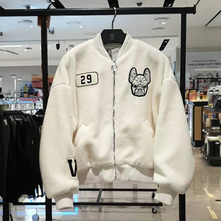 韓國 Lifework Logo 字樣圖案 女裝 抓絨雙面外套|白色 ★ 卡奇色|2024 秋冬季