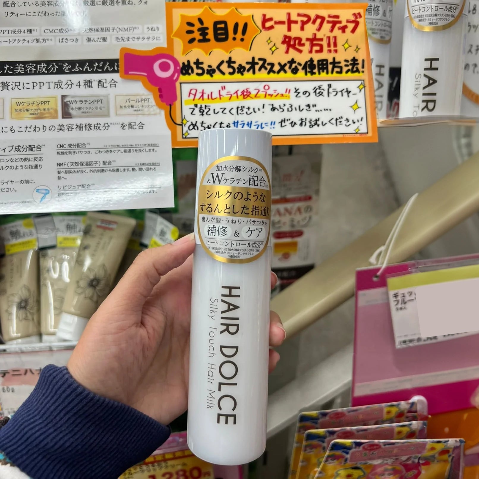 After drying with a towel, apply an appropriate amount to the entire hair, especially the ends, and then blow dry with a hair dryer.